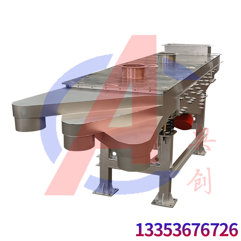 直線振動篩主要由篩箱、振動電機、篩網、減震彈簧、底座等部分組成。篩箱是承載物料和實現篩分功能的主體結構,通常采用優質鋼板焊接而成,具有良好的強度和剛度。振動電機作為直線振動篩的動力源,安裝在篩箱的兩側,通過偏心塊的旋轉產生激振力,使篩箱做直線往復運動。篩網是實現篩分的關鍵部件,根據不同的除雜需求,可選用不同目數和材質的篩網,如不銹鋼篩網,具有耐腐蝕、強度高、不易堵塞等特點。減震彈簧安裝在篩箱和底座之間,能夠有效減少振動對設備和基礎的影響,降低噪音,同時保證篩箱的穩定運行。底座為整個設備提供支撐,通常設計有地腳螺栓孔,便于設備的安裝和固定。