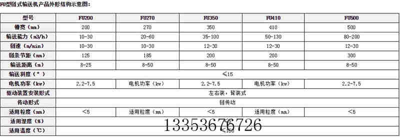6、系列齊全,有FU150、FU200、FU270、FU350、FU410、FU500(數(shù)字表示運送槽內(nèi)寬)。