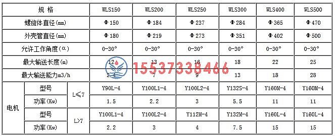 無軸螺旋輸送機參數表如下: